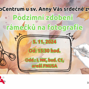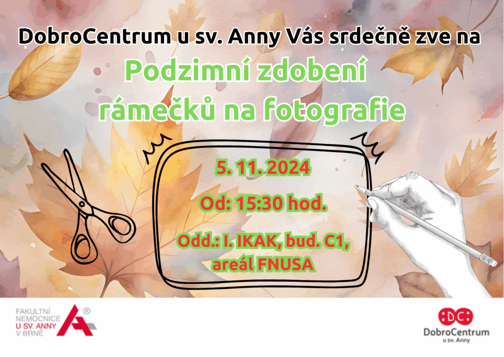 DobroCentrum u sv. Anny zve pacienty I. interní kardioangiologické kliniky FNUSA a LF MU na výtvarnou dílnu, v rámci které si podzimně nazdobí rámečky na fotografie. Akce se uskuteční 5. listopadu 2025 od 15:30.