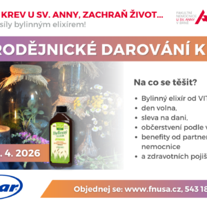 Hody hody doprovody, dejte kapku krve místo vody! Odběrové centrum Transfuzního oddělení Fakultní nemocnice u sv. Anny v Brně připravilo oblíbenou velikonoční akci, ze které si každý dárce krve nebo krevní plazmy v týdnu od 14. do 27. dubna 2025 odnese kromě dobrého pocitu z pomoci potřebným také mazanec. Pečivo na velikonoční stůl věnoval brněnský Globus, který je dlouhodobým partnerem pracoviště.