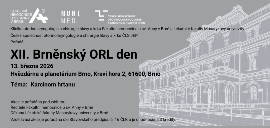 Vzdělávací akce Kliniky otorinolaryngologie a chirurgie hlavy a krku Fakultní nemocnice u sv. Anny v Brně a Lékařské fakulty Masarykovy univerzity a České společnosti otorinolaryngologie a chirurgie hlavy a krku ČLS JEP